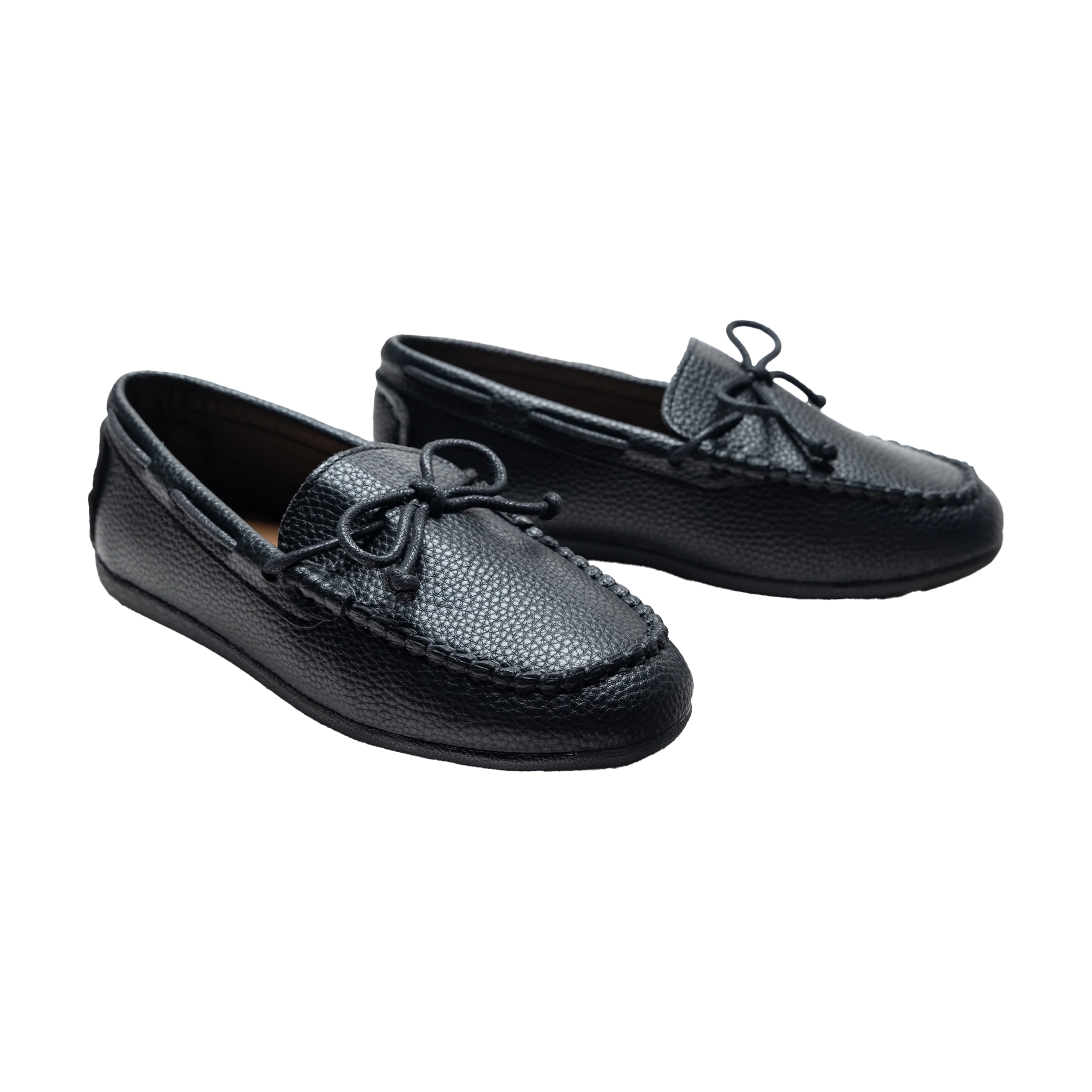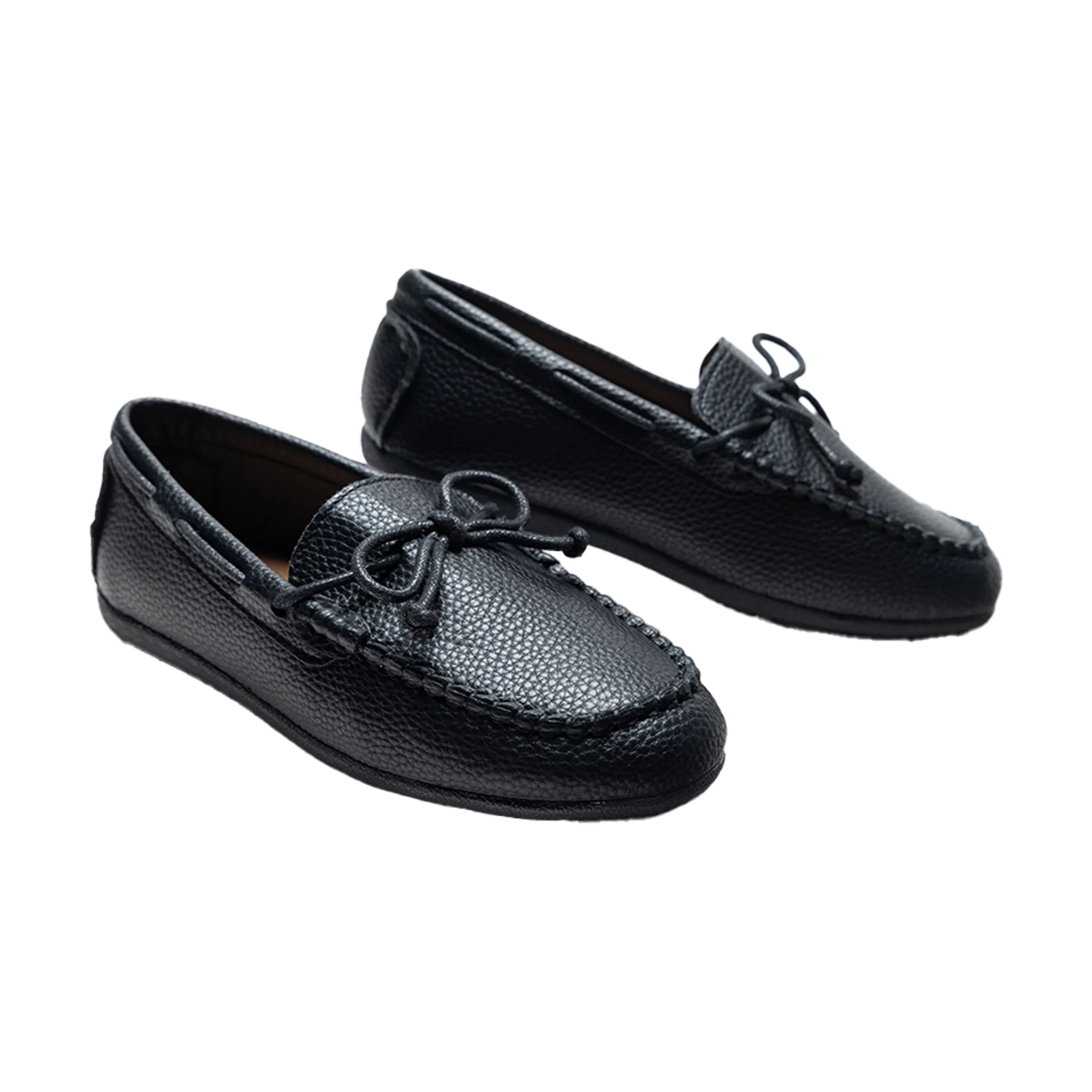 Ideal for young gentlemen who appreciate a mix of elegance and comfort, the Black Faux Leather Laced Loafers by Moustache are a must-have addition to any wardrobe, offering effortless style for every occasion.