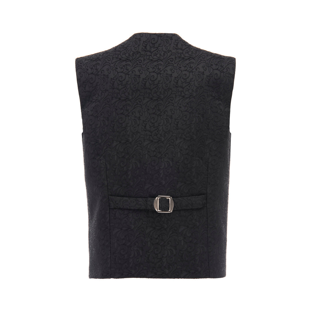 Additionally, the Black Paisley Print Vest and Bowtie includes an adjustable waist in the back, ensuring a perfect fit for your child. The matching bow tie complements the vest perfectly, adding a touch of coordinated elegance to the outfit. Each piece is meticulously designed to enhance your child's formal attire.