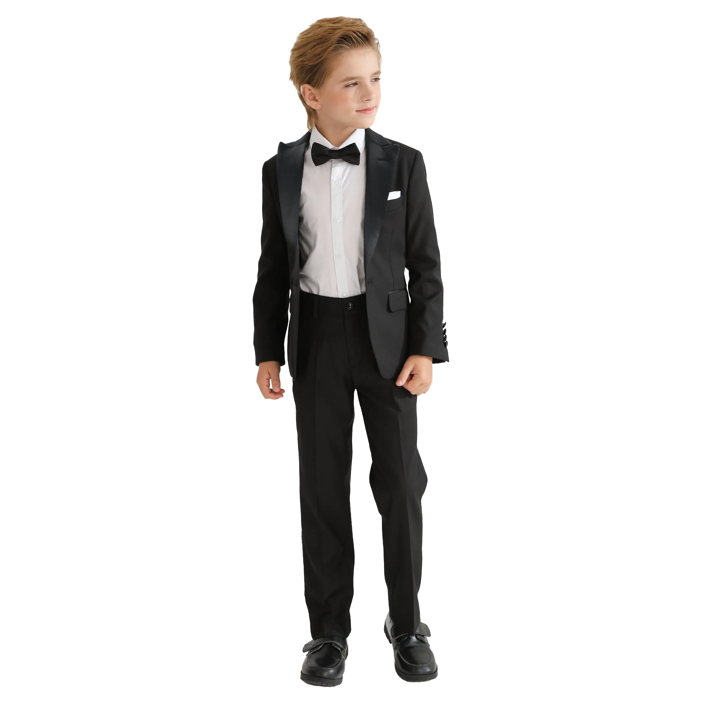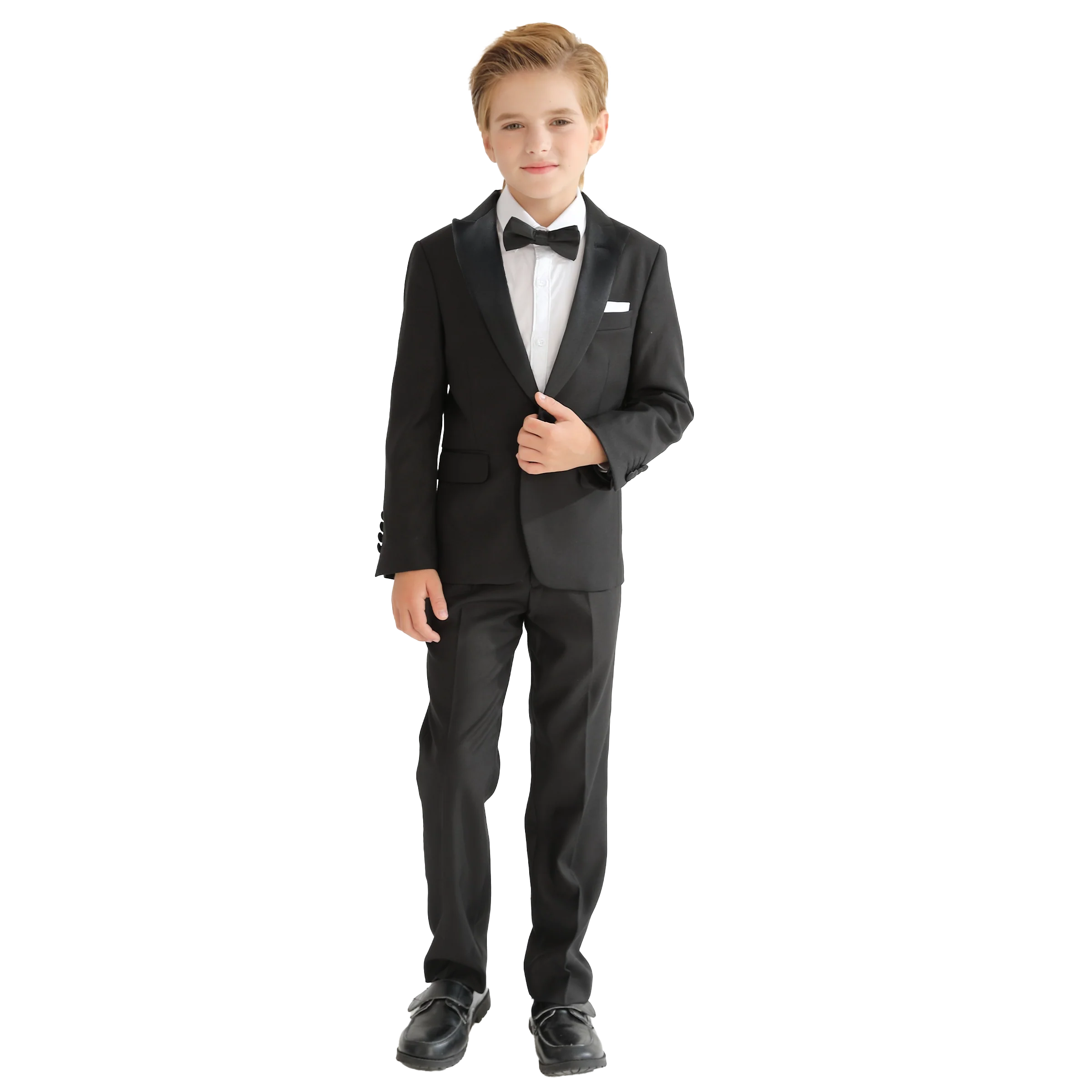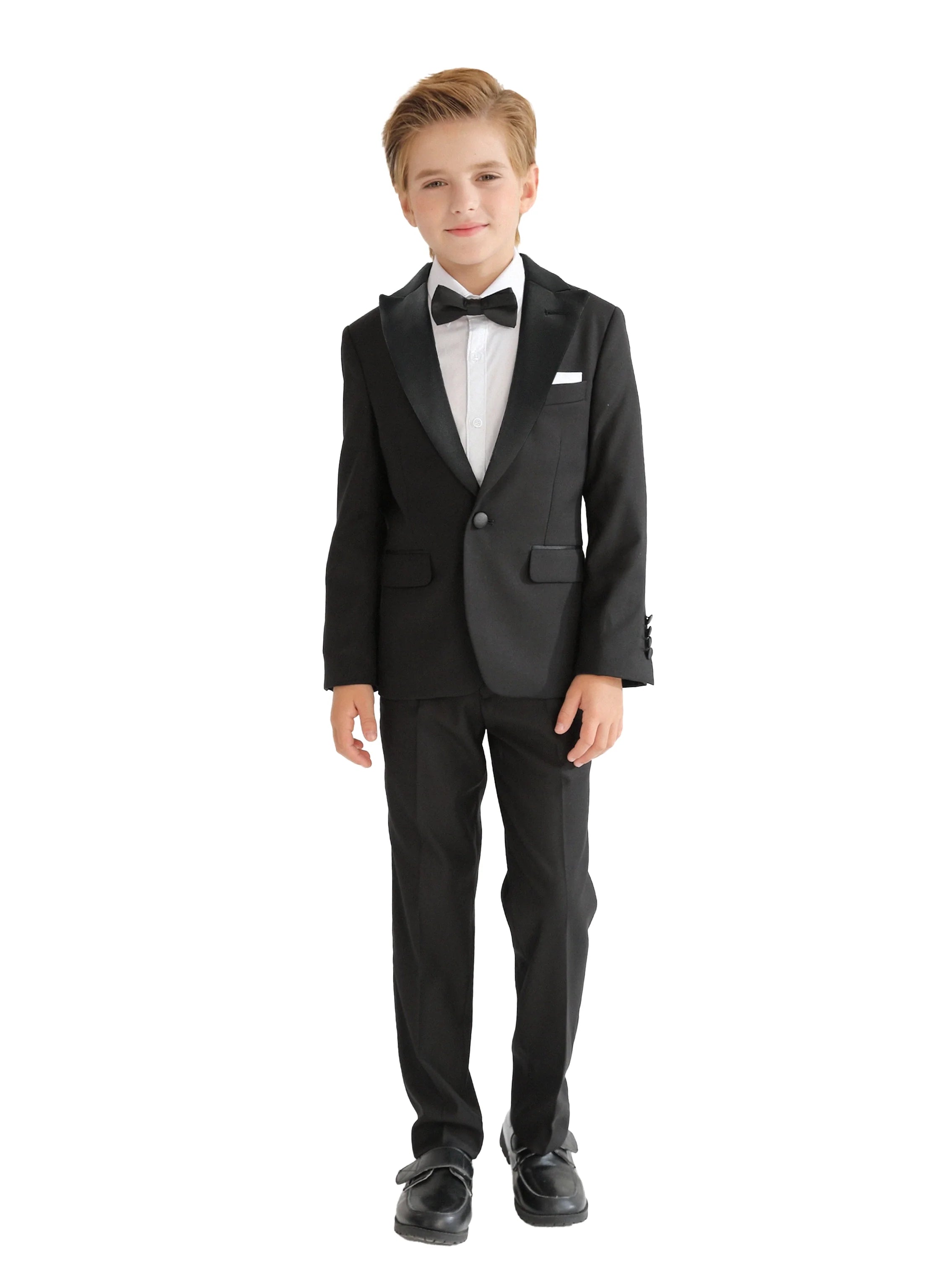 Complete your young gentleman's formal wardrobe with the Black Peak Lapel Trim Wool Suit, impeccably crafted suit set that combines timeless style with modern tailoring.