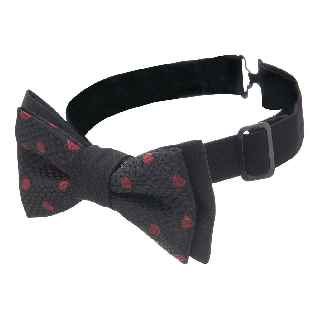 Please note that this bow tie is made from 100% polyester and should not be washed. Spot clean only to preserve its quality. Add this smart black and red polka dot bowtie to your child's wardrobe today and watch him step out in style!