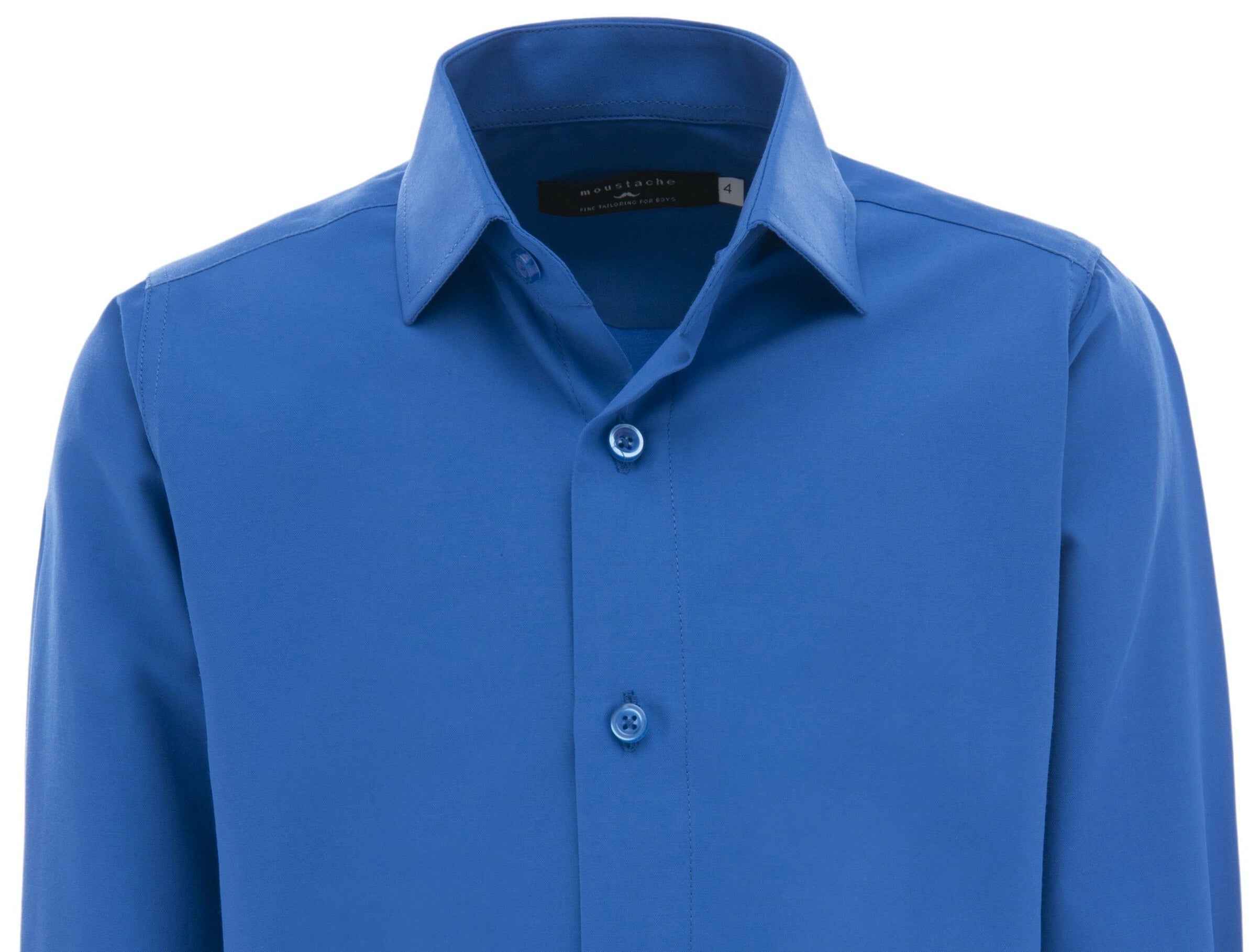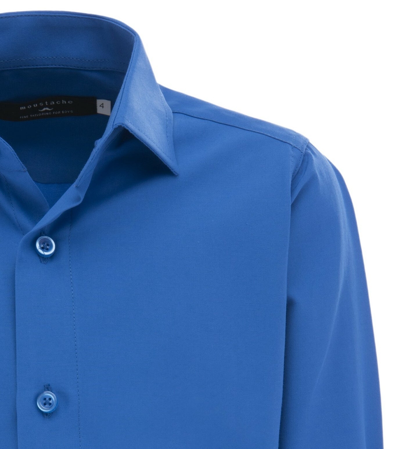 The high-quality cotton fabric guarantees durability and ease of care, ensuring that this shirt remains a staple in your child's wardrobe for a long time. Perfect for any special occasion, the Blue plain solid dress shirt from Moustache combines style, comfort, and practicality in one elegant package.