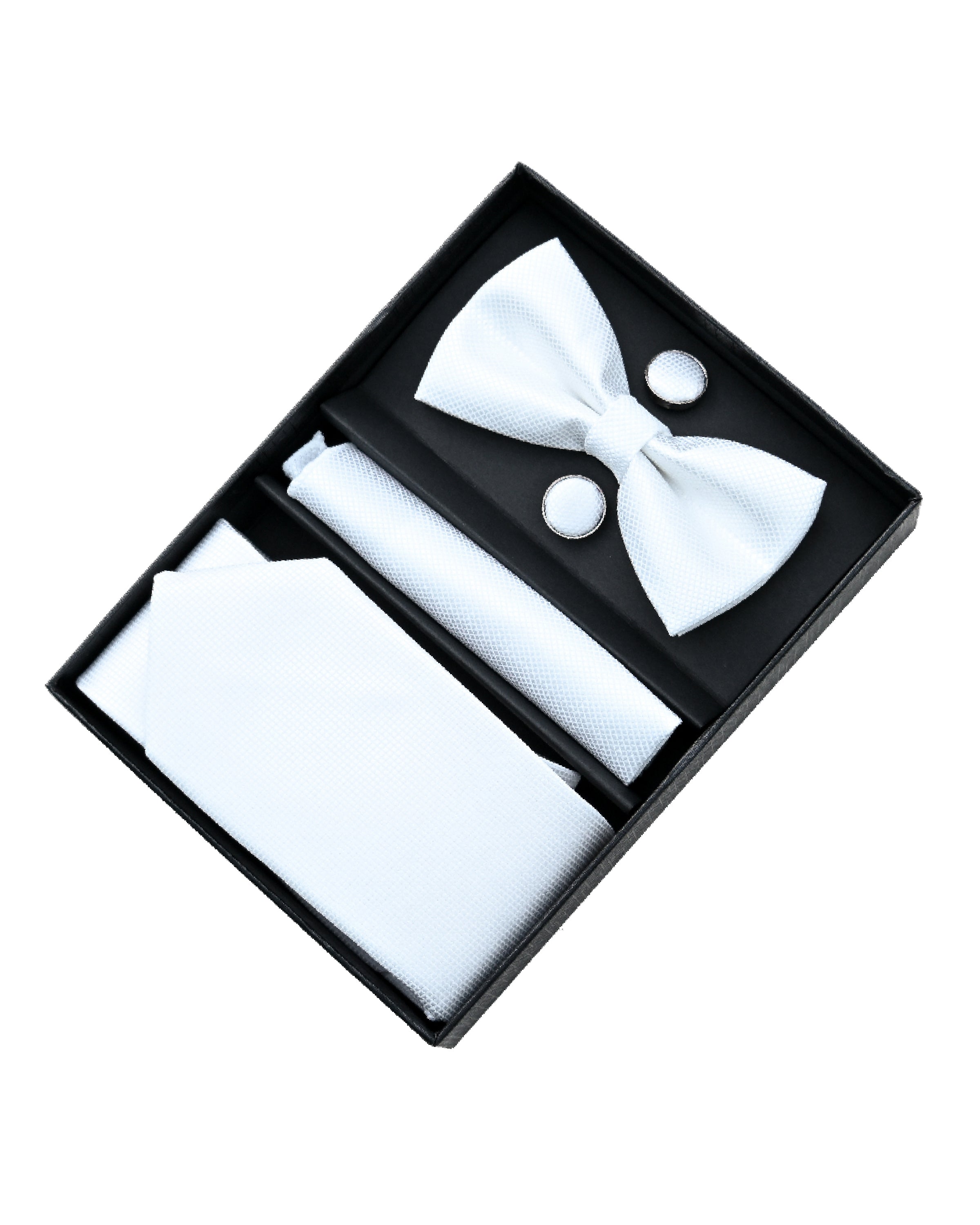 - Set includes matching tie, bowtie, pocket square, and cufflinks