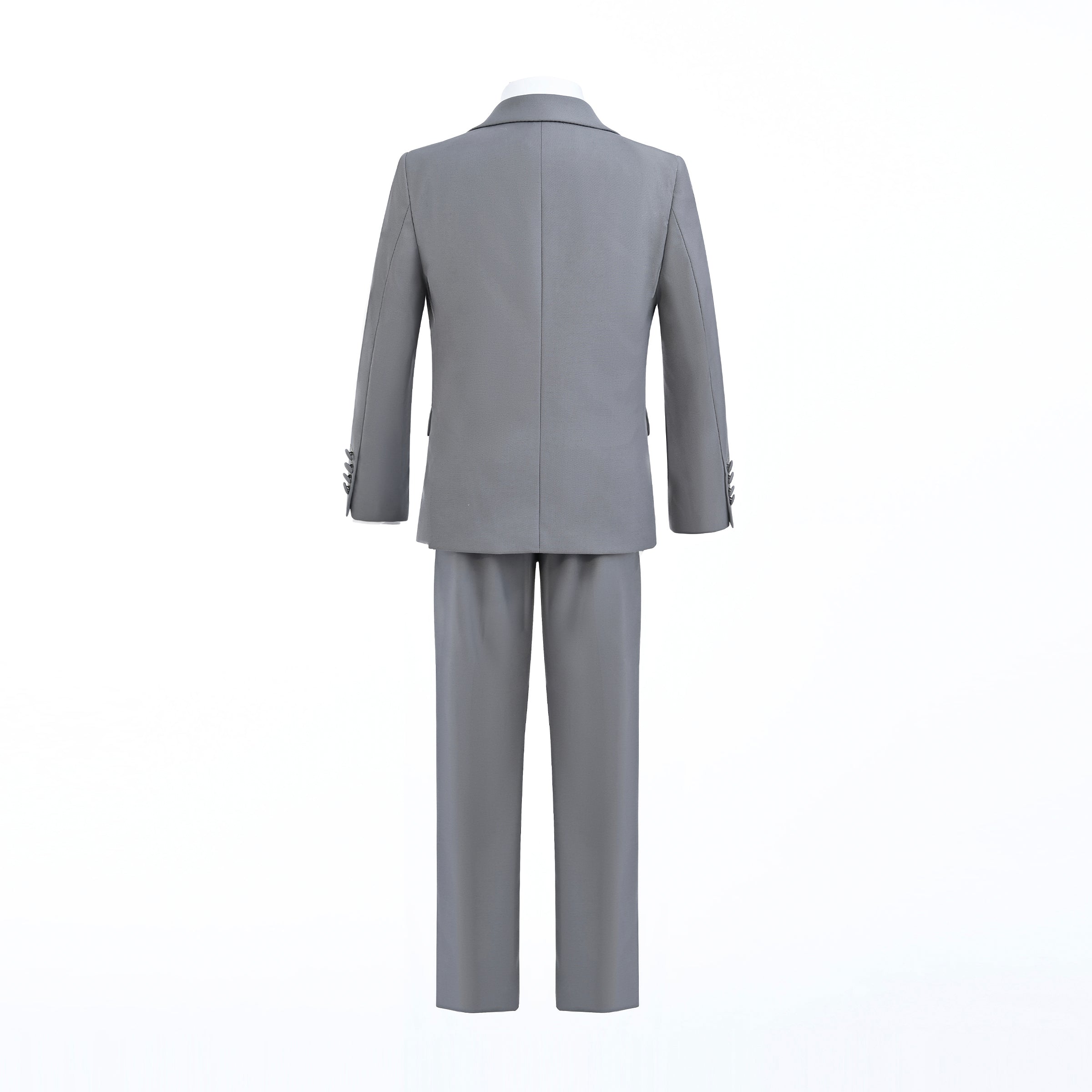 Each piece of the premium Gray 5pc Peak Lapel Tuxedo showcases superior craftsmanship, from the expertly finished seams to the high-quality lining that promises both comfort and durability. The blazer's structured shoulders ensure proper draping, while strategically placed darts create a clean, tailored appearance that moves naturally with your child. A coordinating pocket square adds the finishing touch to this sophisticated ensemble, perfect for ring bearers, first communions, wedding parties, and other special occasions.