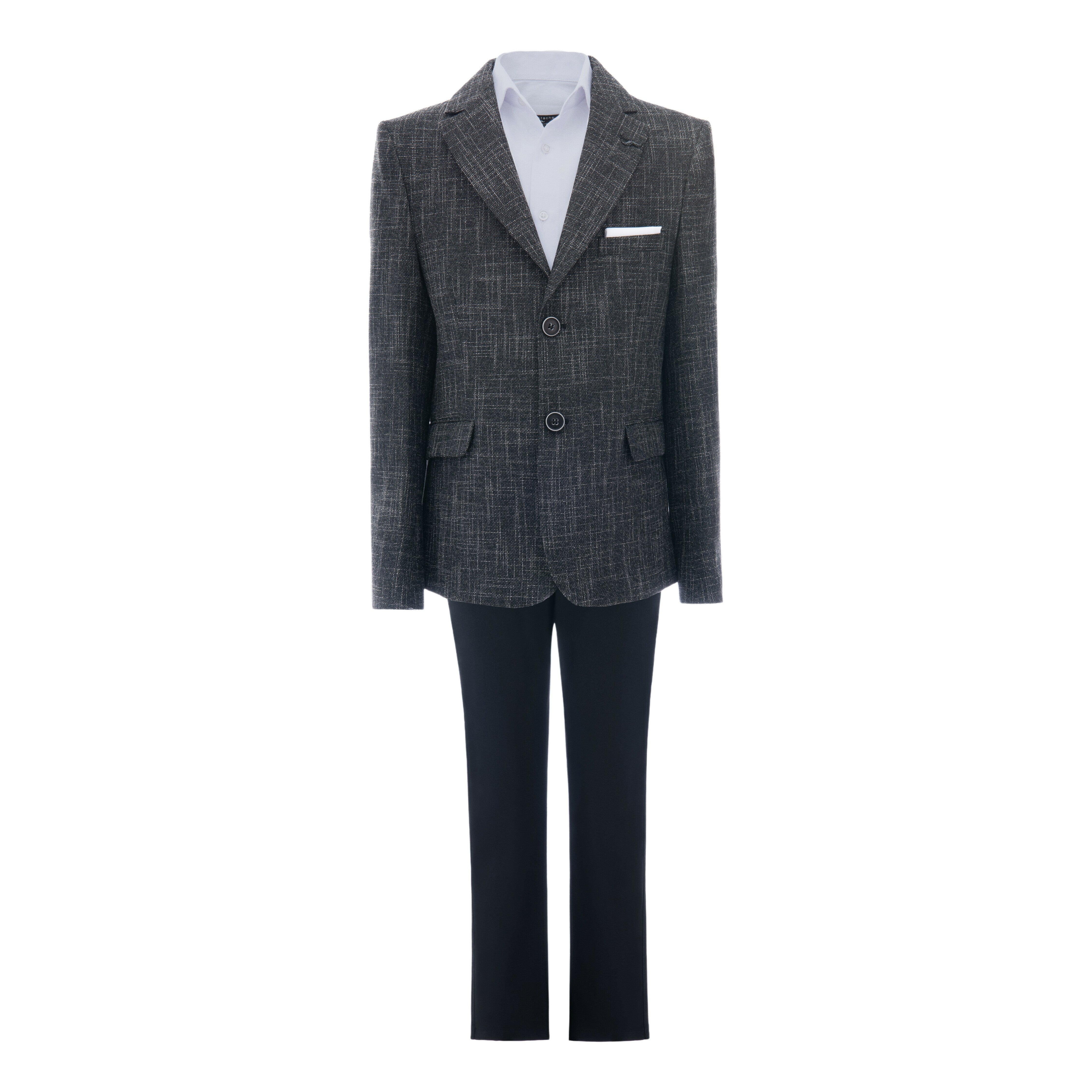 Additionally, the smoky gray peak lapel blazer stands out with its elegant design. Featuring dual pockets and a double button closure, the blazer is crafted from high-quality materials. Thus ensuring a comfortable and tailored fit that enhances your child's silhouette.