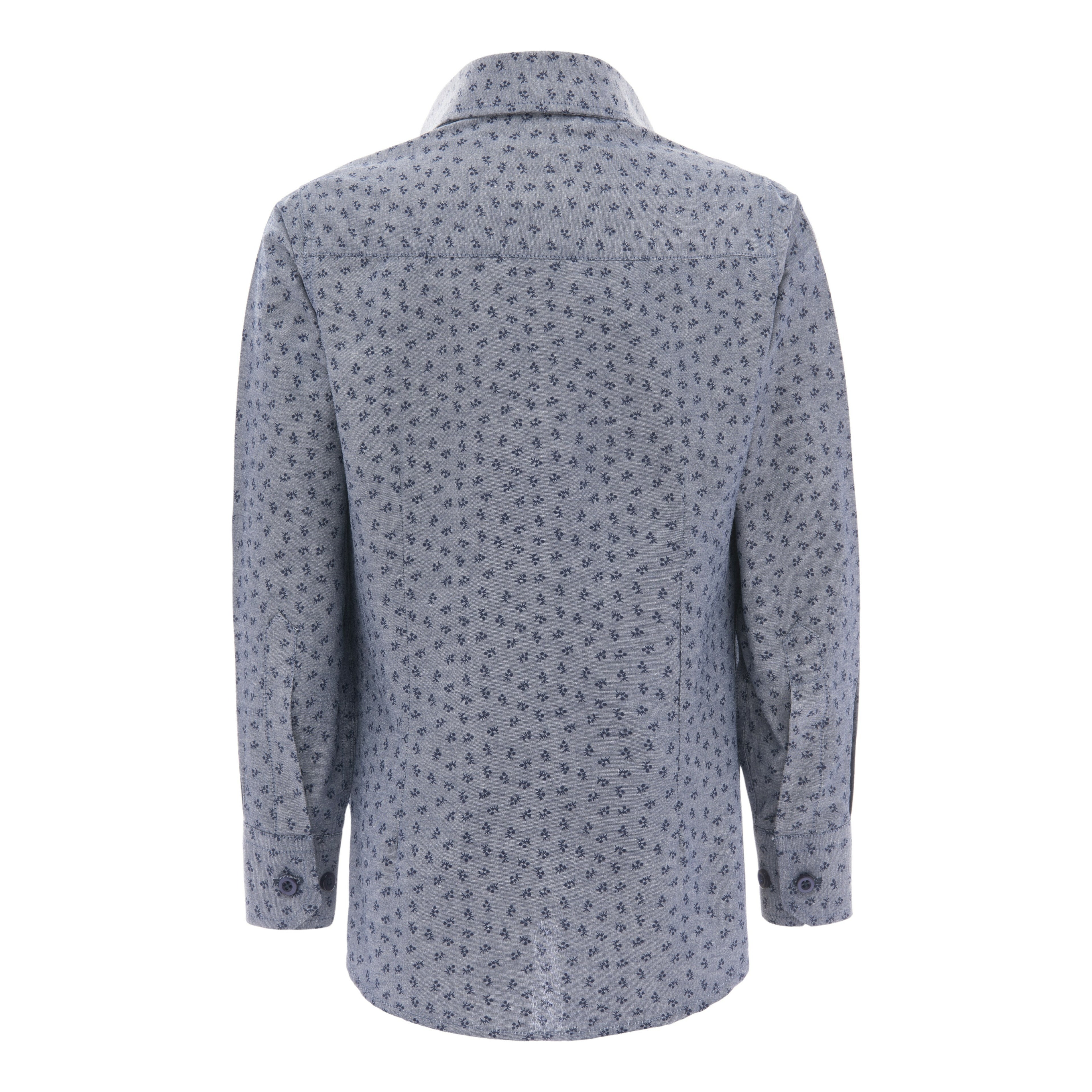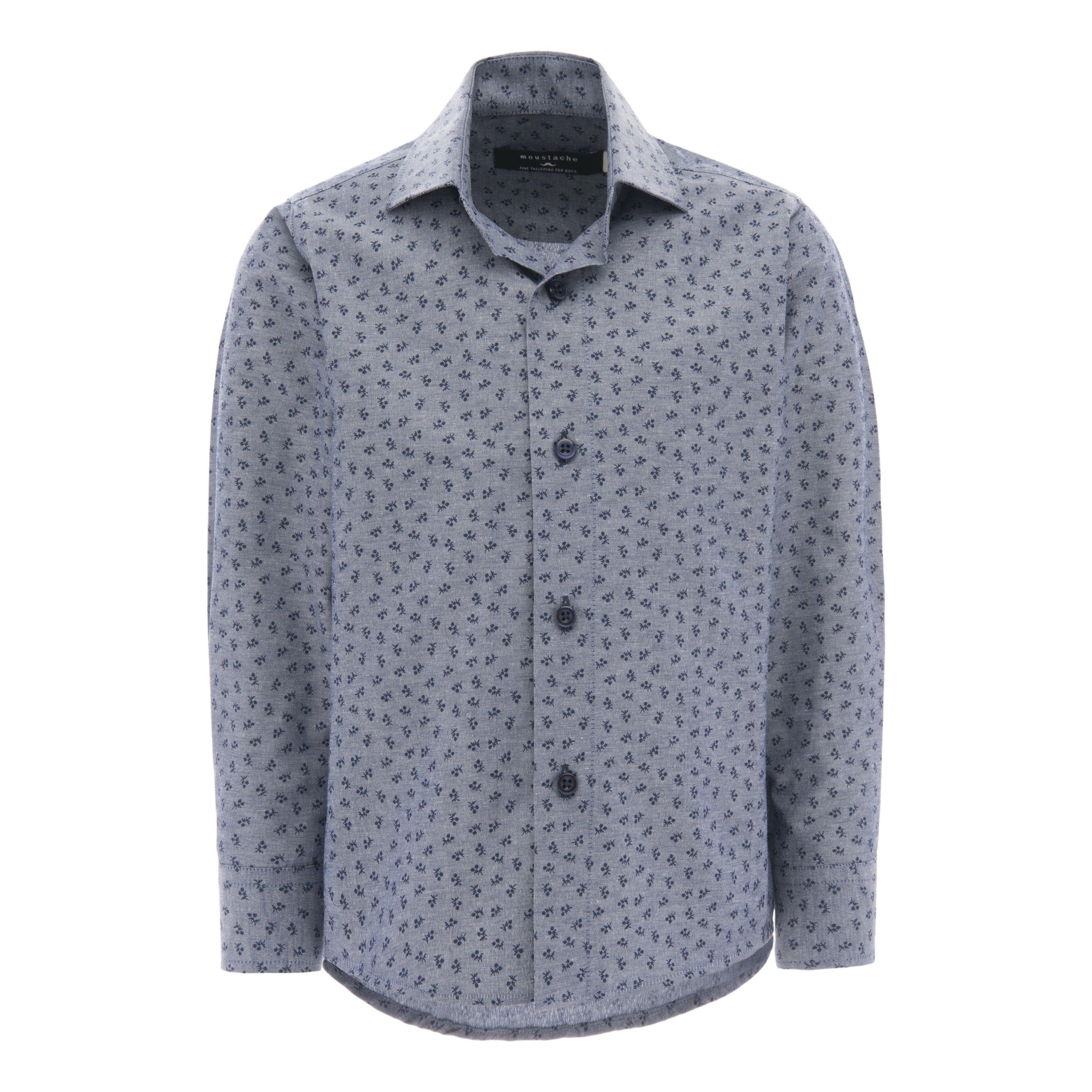 Elevate your young gentleman's wardrobe with this charming gray dandelion print dress shirt from Moustache. Made from lightweight cotton, this shirt offers a comfortable fit that's ideal for all-day wear. The long sleeves feature button closure hems for a secure fit, while the double button pocket on the upper right hand side adds a stylish touch.