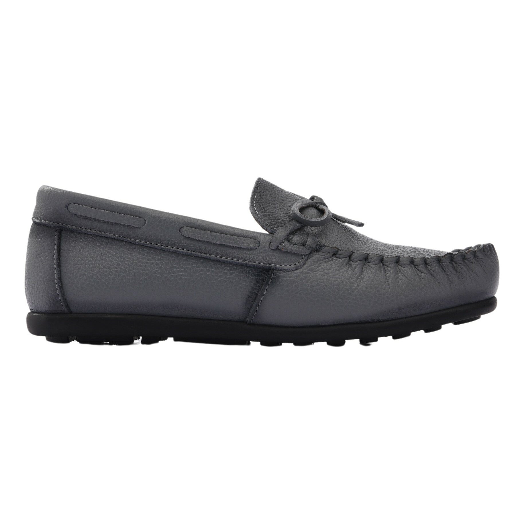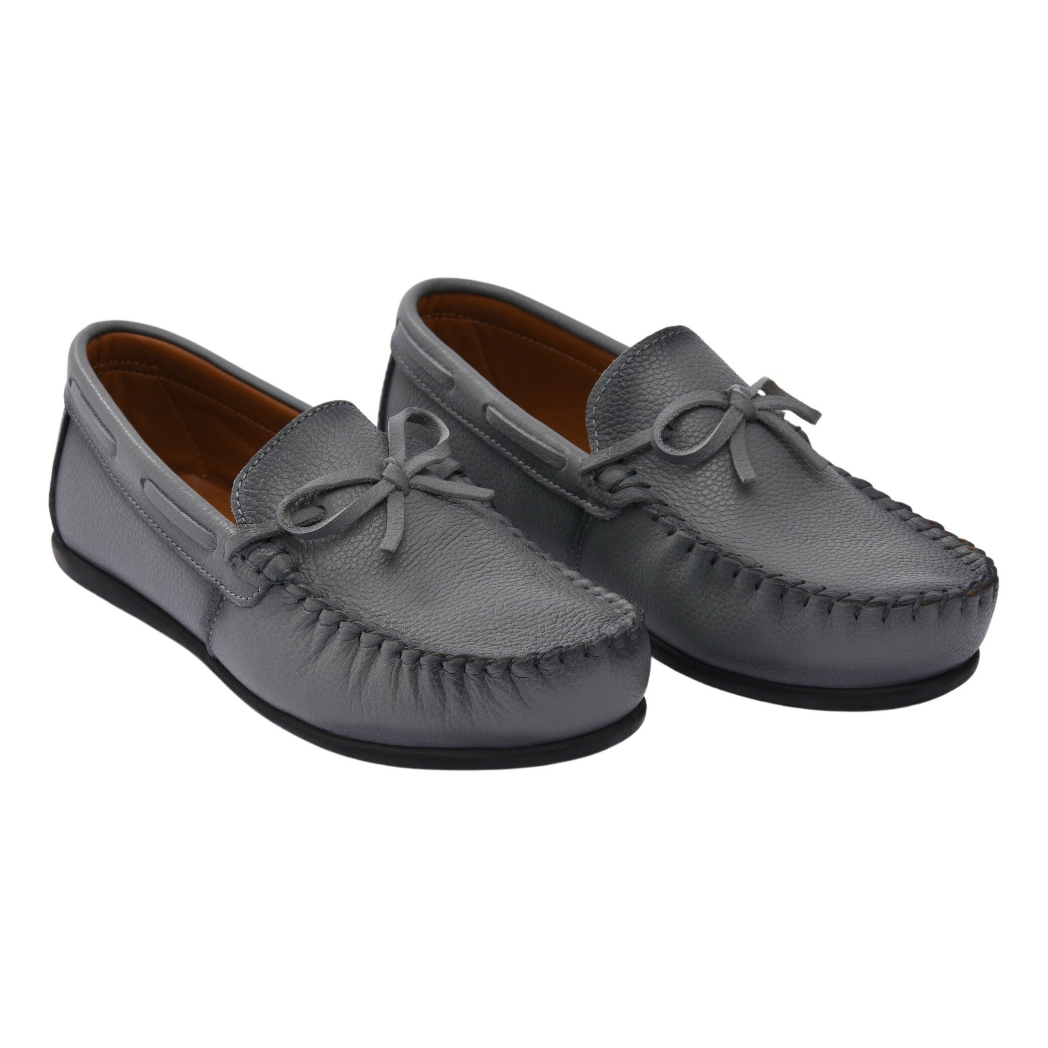 Elevate your child's footwear with these stylish gray leather moccasin loafers from Moustache Kids. Crafted for both style and comfort, these shoes feature a classic loafer style with stitched rounded toes.