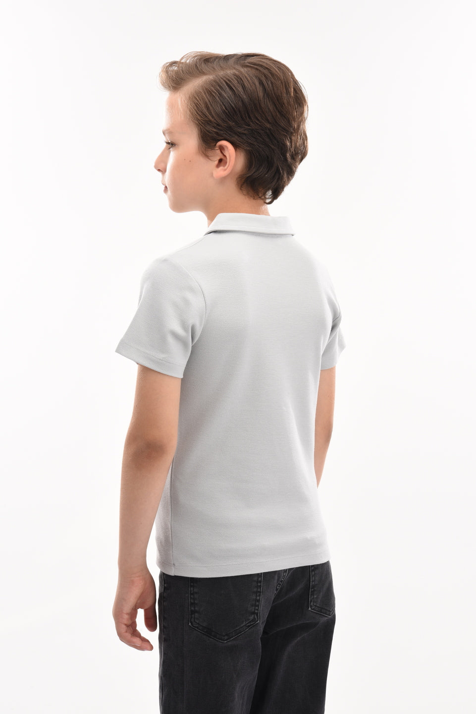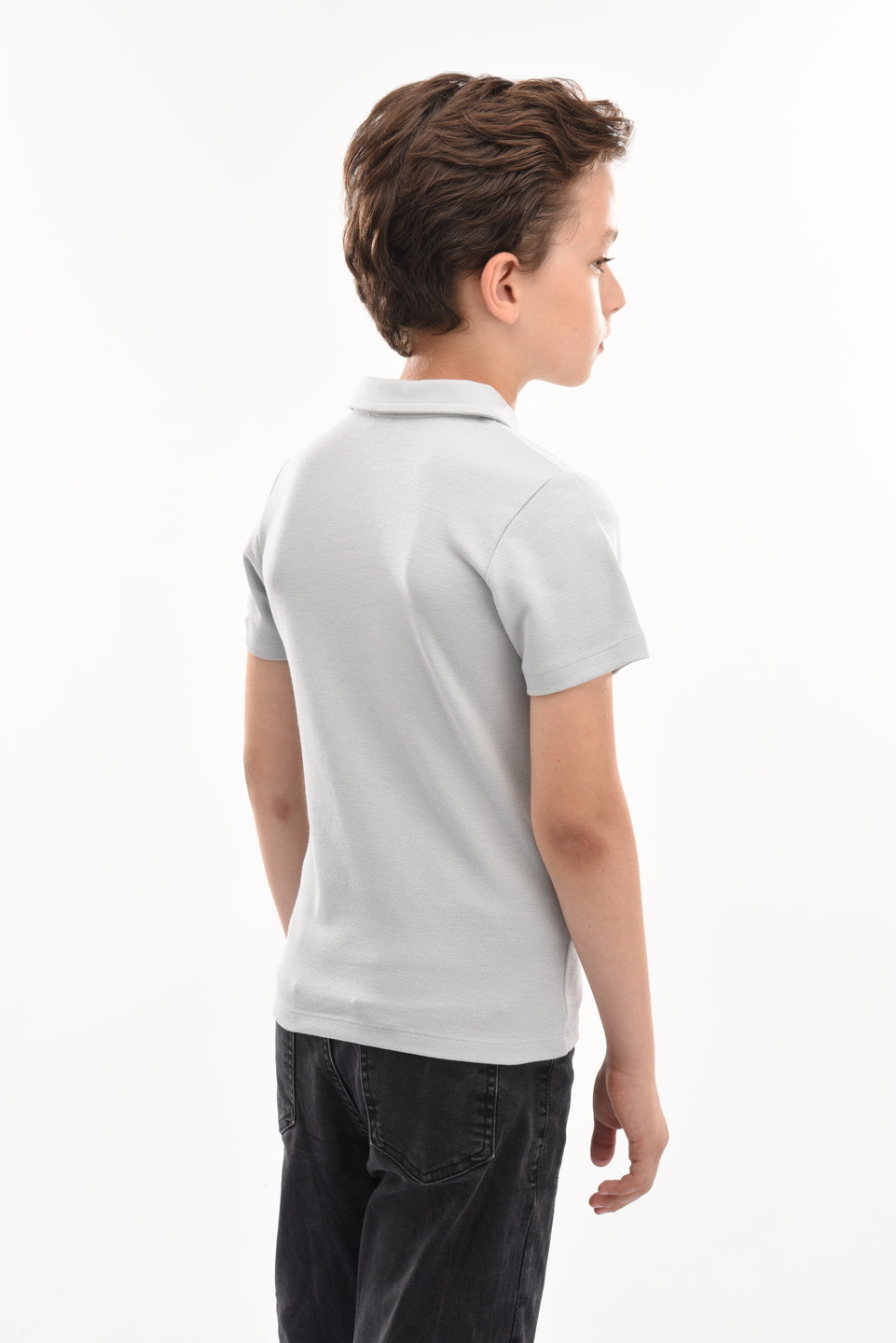 Elevate your child's wardrobe with the Gray Solid Logo Polo for kid boys from Moustache. This versatile polo shirt features a round collared neck and short sleeves, providing a classic and stylish look. Made from soft and comfortable cotton, it ensures breathability and durability, making it perfect for all-day wear.