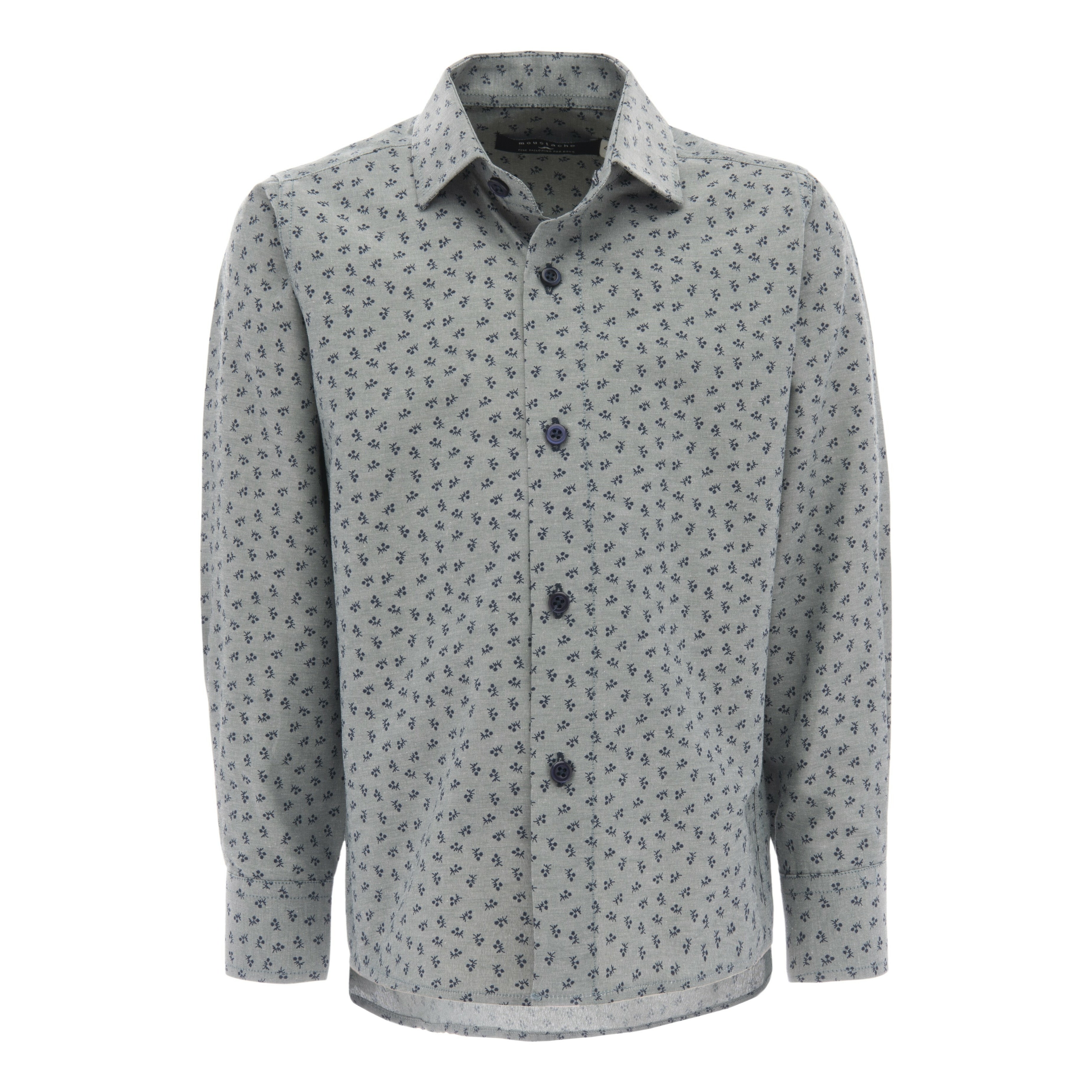 Elevate your child's wardrobe with this green dandelion print dress shirt for kid boys from Moustache. This stylish shirt features a delicate dandelion print, adding a touch of whimsy to any outfit. Crafted from lightweight cotton, it ensures a comfortable fit for all-day wear. The long sleeves with button closure hems provide a polished look, while the double button pocket on the upper right-hand side with navy buttons adds a charming contrast.