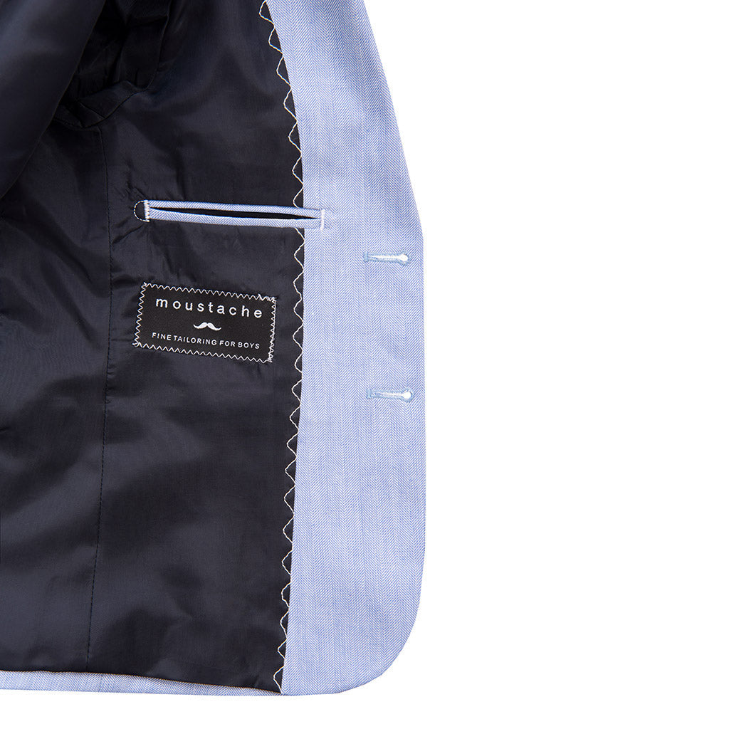 Style this Light Blue Peak Lapel Blazer with any shirt and pants from the Moustache collection for both casual outings and sophisticated evenings. Perfect for any special occasion, this versatile piece will make your child look sharp and polished.