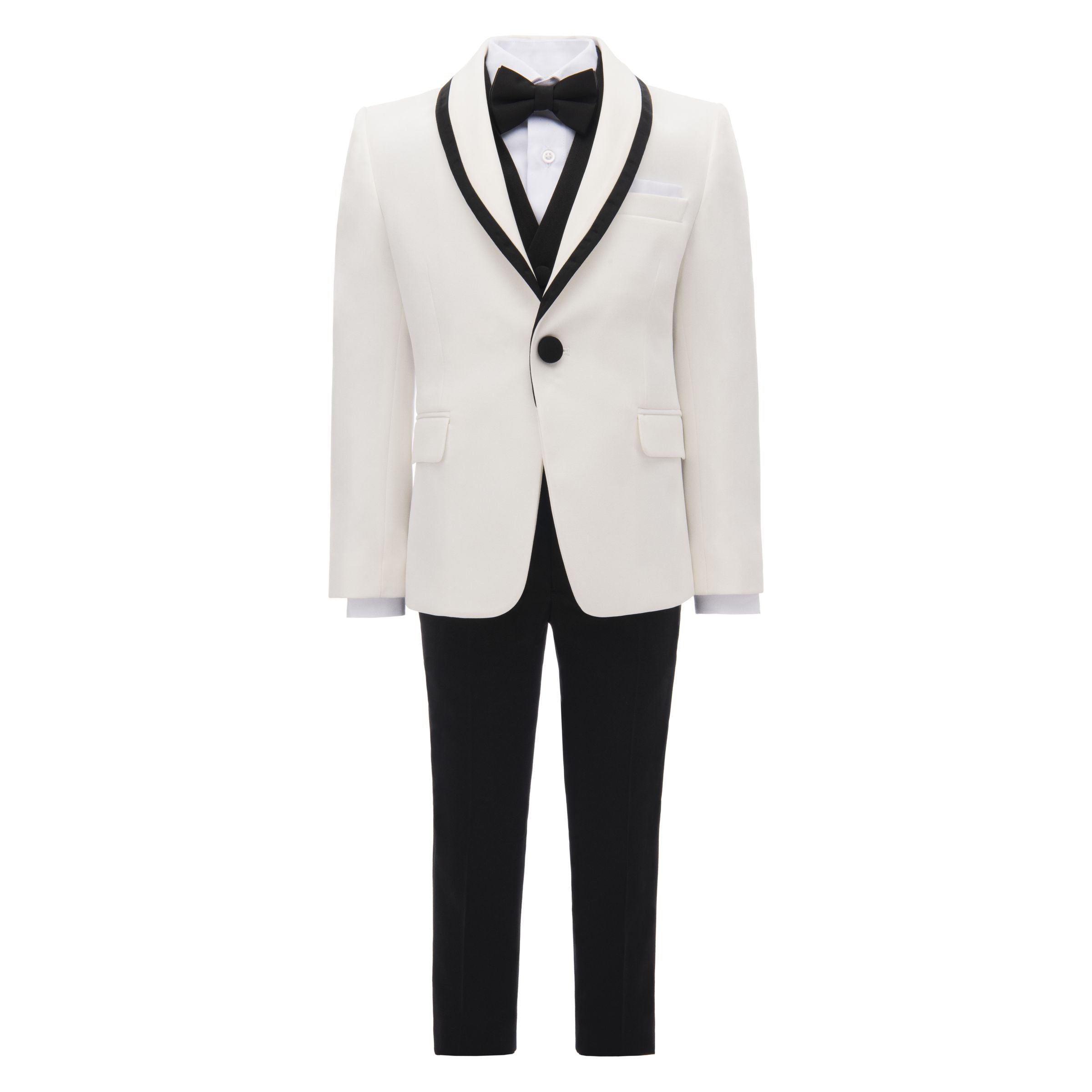 Cream-Black Trim Shawl Lapel 5 Pcs Tuxedo Set
