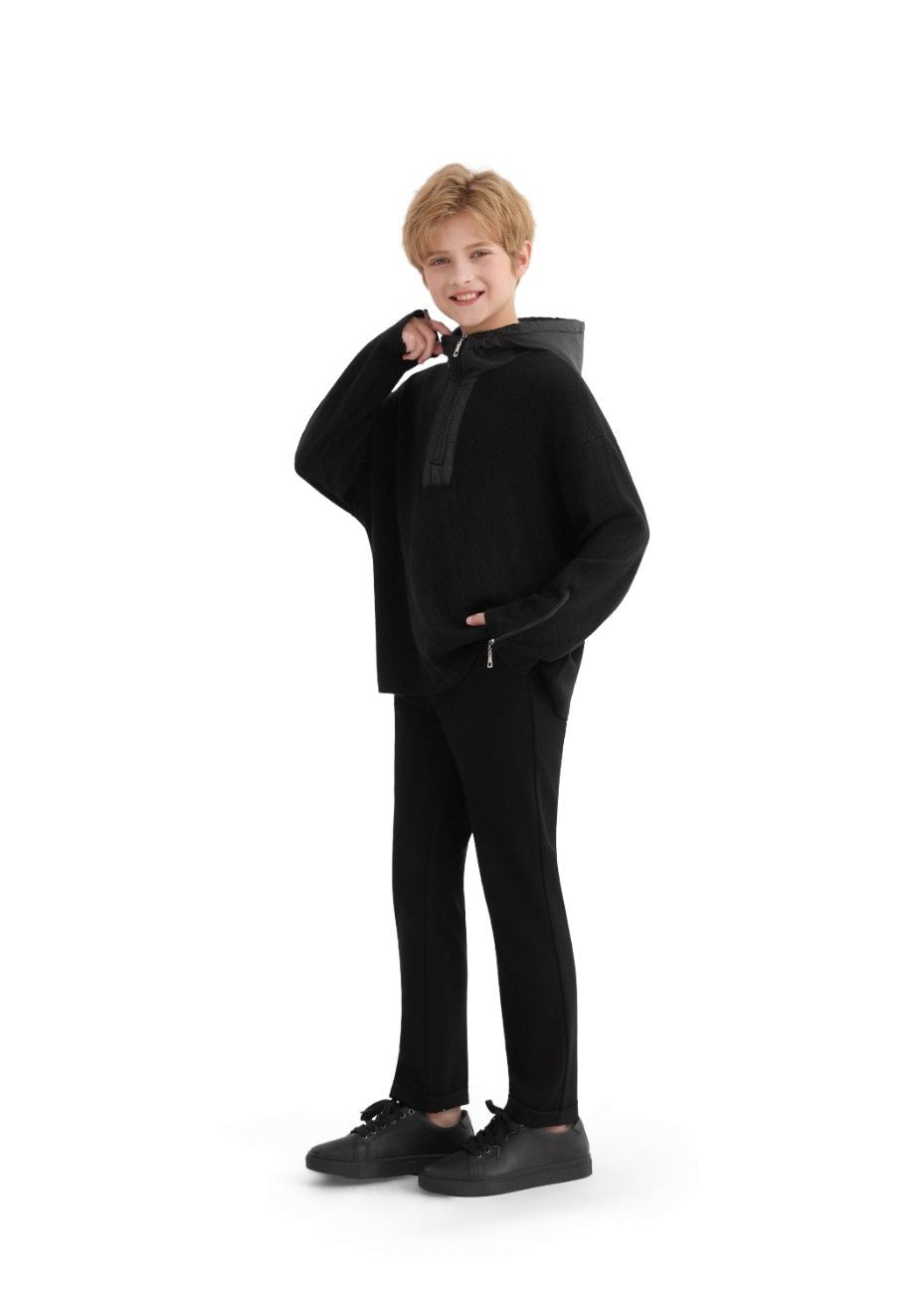 Black Ribbed Half-Zip Sweater
