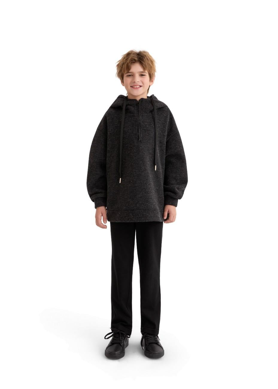 Dark Gray Half-Zip Hooded Sweatshirt