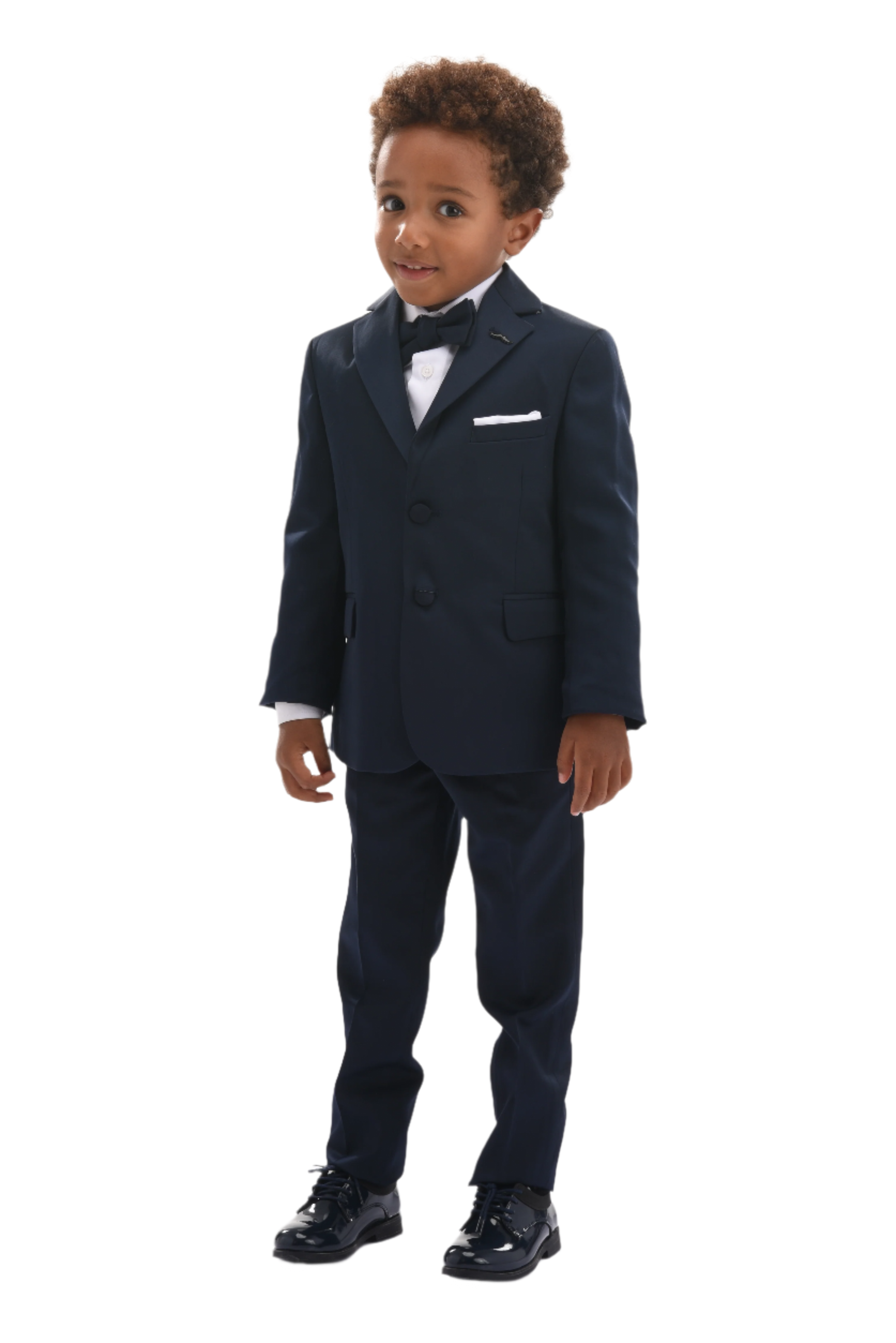 Crafted from high-quality materials, this tuxedo set is both stylish and comfortable, ensuring that your little one looks and feels great. Dress your child in style with the Navy Blue 5pc Peak Lapel Tuxedo from Moustache.
