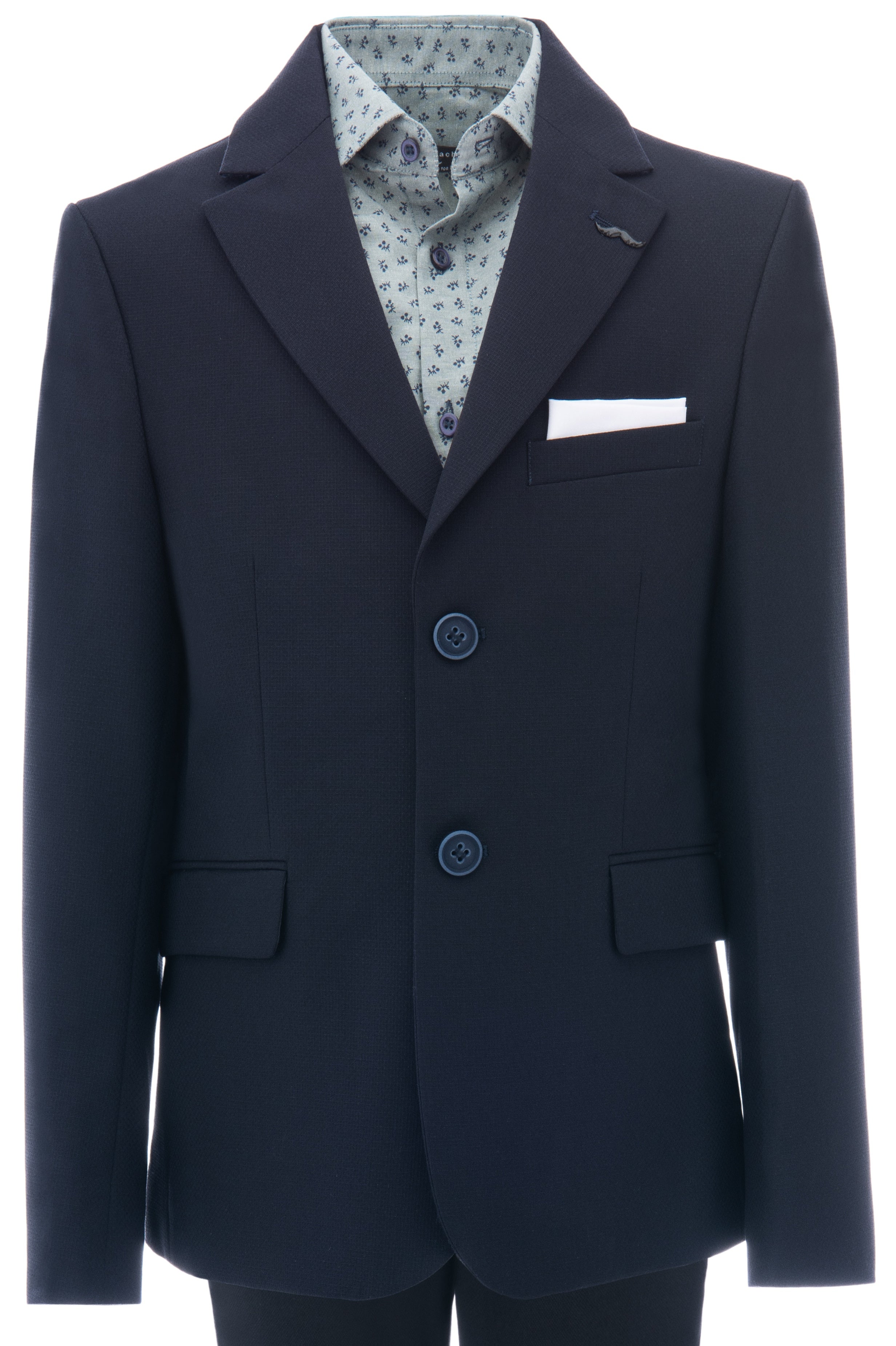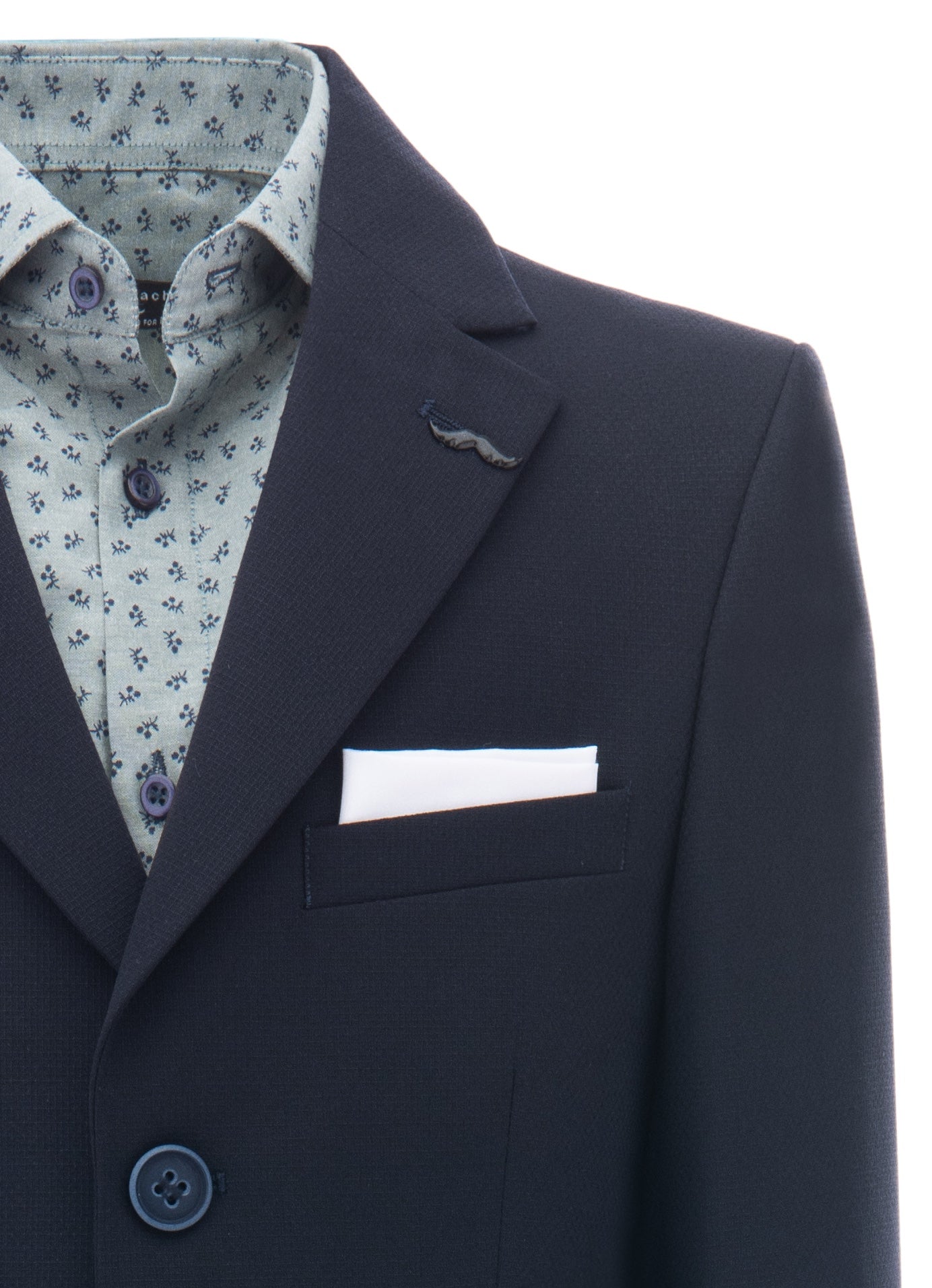 Elevate your little one's formal wear with the Navy Lucien Formal Dress Outfit Moustache. This sophisticated 3-piece ensemble is a sartorial masterpiece, crafted with impeccable attention to detail. The navy Lucien formal outfit features a stunning peak lapel blazer, expertly tailored to create a polished and dapper look.