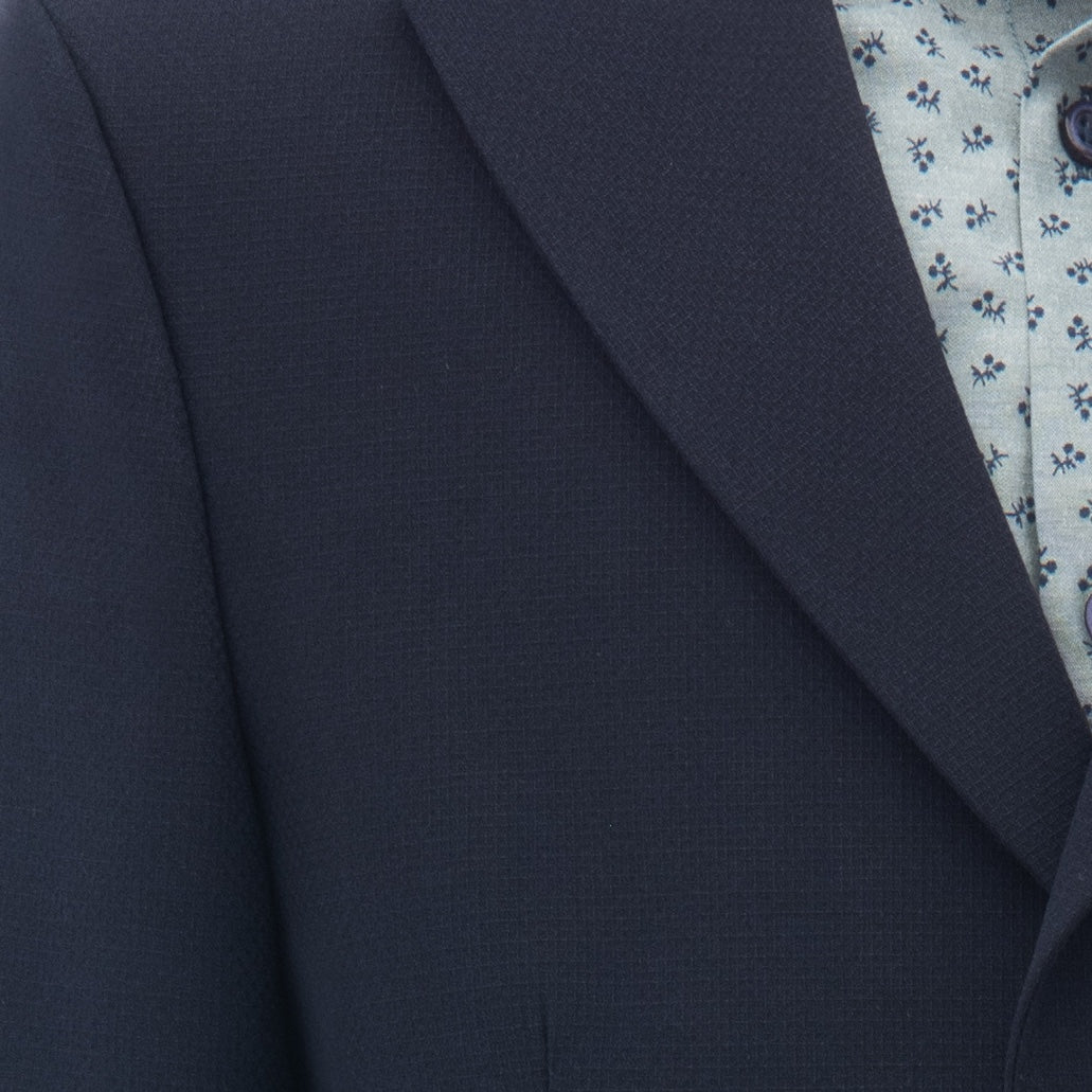 The blazer's double-button closure and dual pockets add a touch of refinement, while the true-to-size fit ensures a flattering silhouette. Complementing the blazer is a vibrant green dandelion print dress shirt, injecting a playful yet elegant touch to the navy Lucien formal outfit. Complete the ensemble with the matching black pants, designed to pair seamlessly with the blazer and shirt.