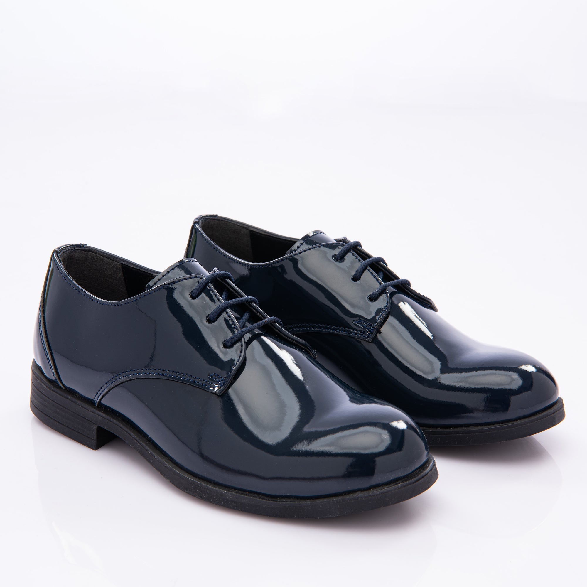 Elevate your little one's formal footwear with the navy open lace patent dress shoes from Moustache. These sophisticated lace-ups exude timeless elegance, perfect for any special occasion.