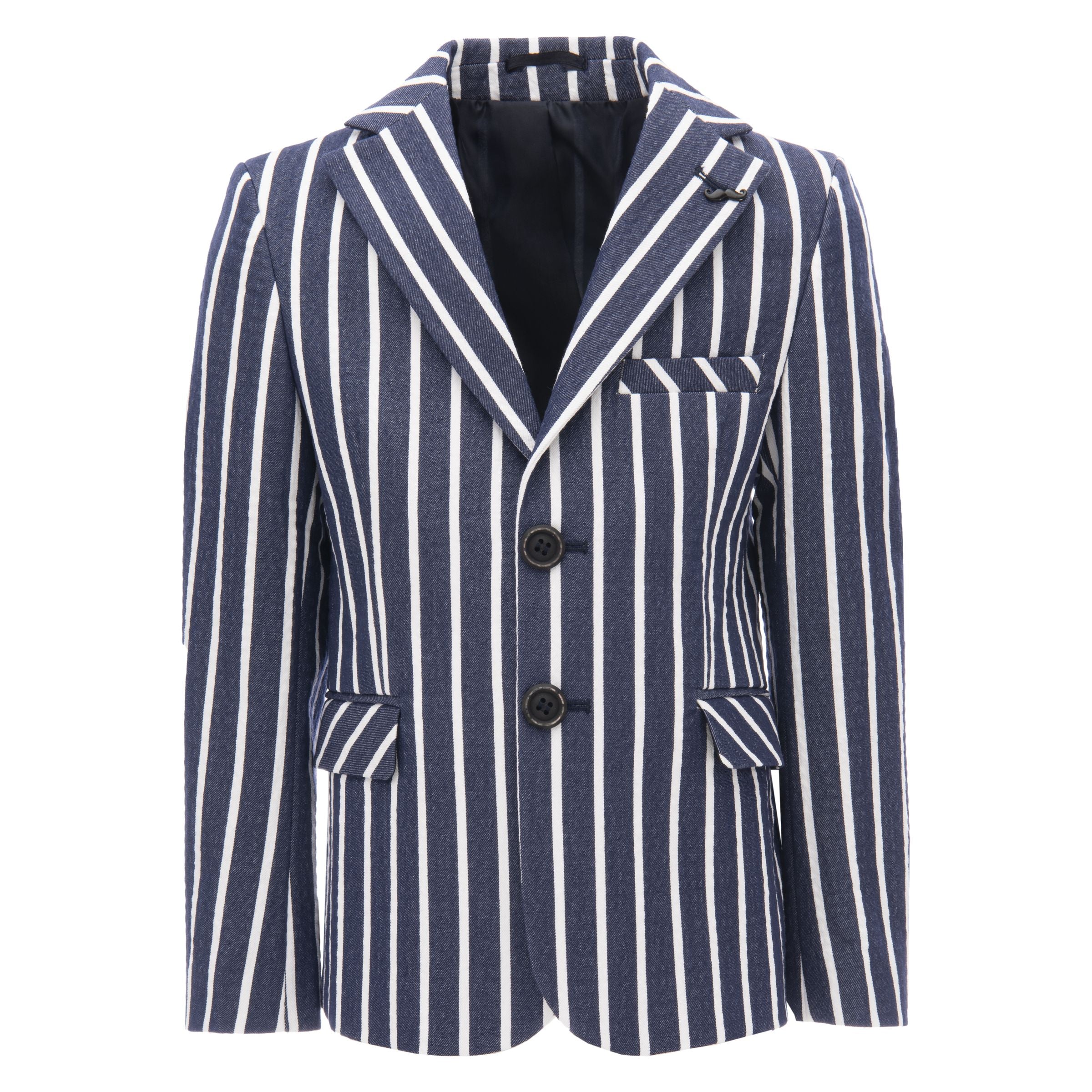 Invest in your child's fashion future with this timeless and elegant navy striped peak lapel blazer from Moustache, and watch them exude confidence and sophistication at every occasion.