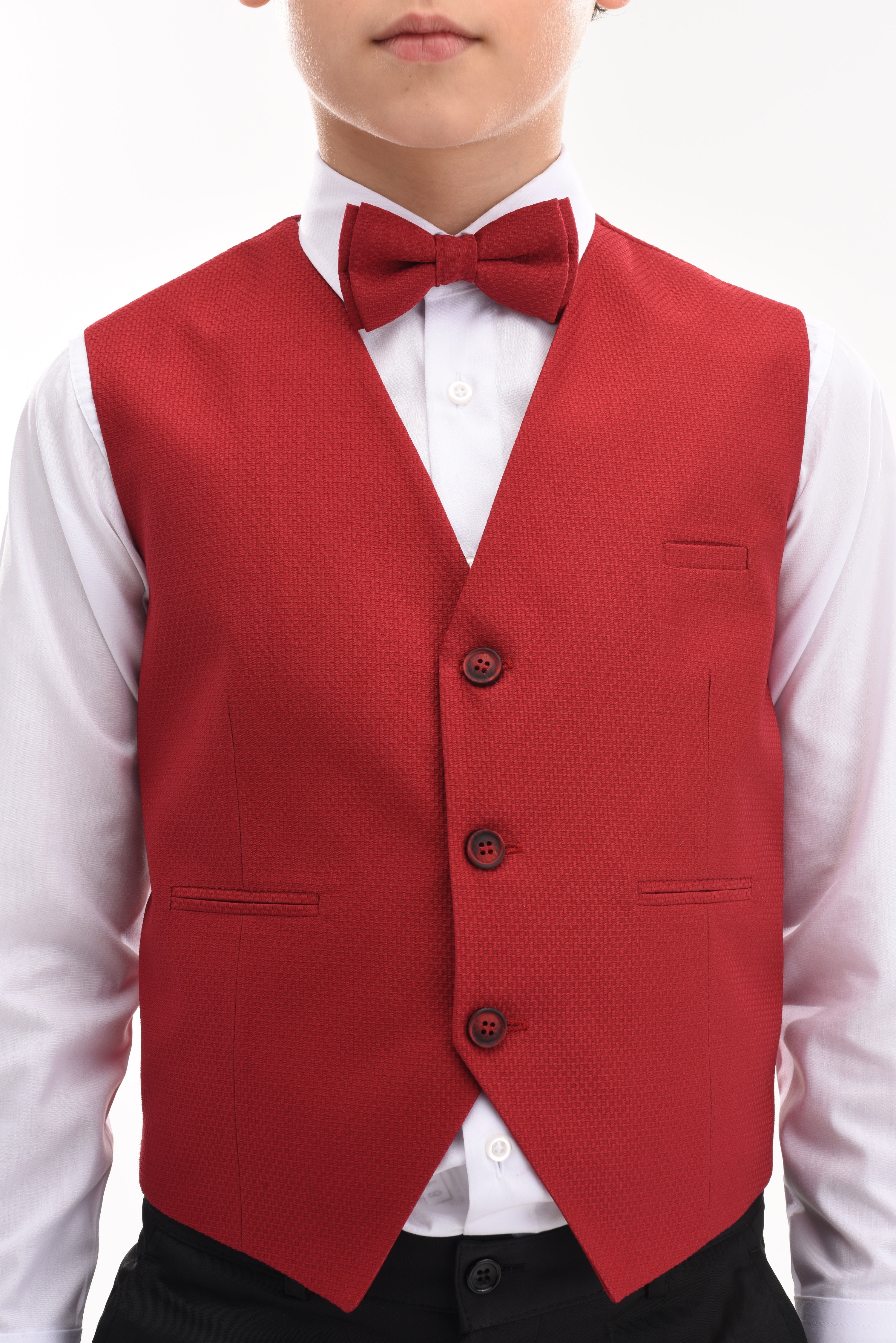Choose Moustache's Red Solid Suit Vest and Matching Bow Tie for a stylish and sophisticated outfit perfect for any special occasion.