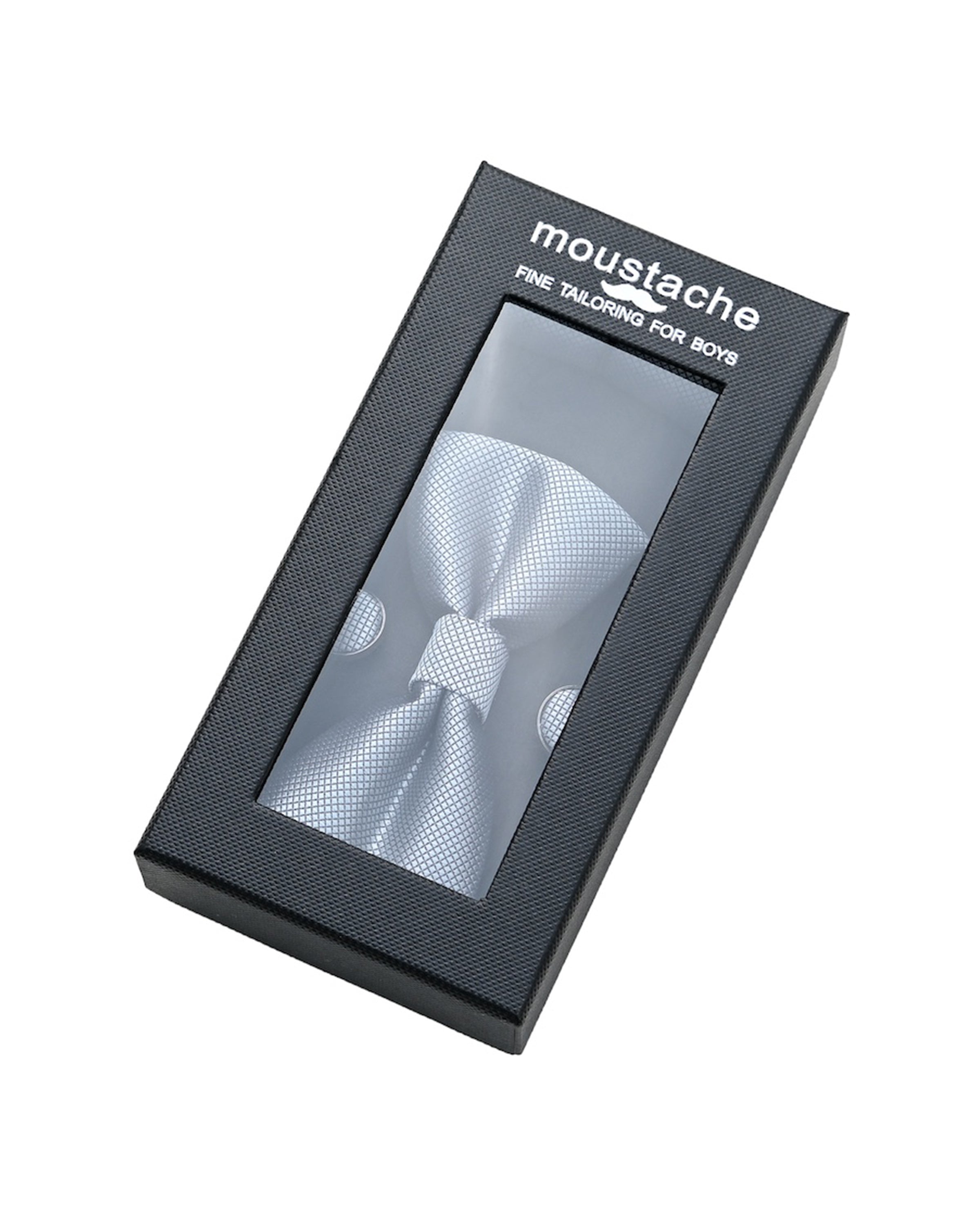 Versatility is at the heart of this set's design. Whether it's donned for a formal gala, a wedding celebration, or to add a touch of refinement,. This silvercrosshatch bowtie set complements various styles and occasions. Its adaptability guarantees your young man will always look impeccably dressed, regardless of the event.