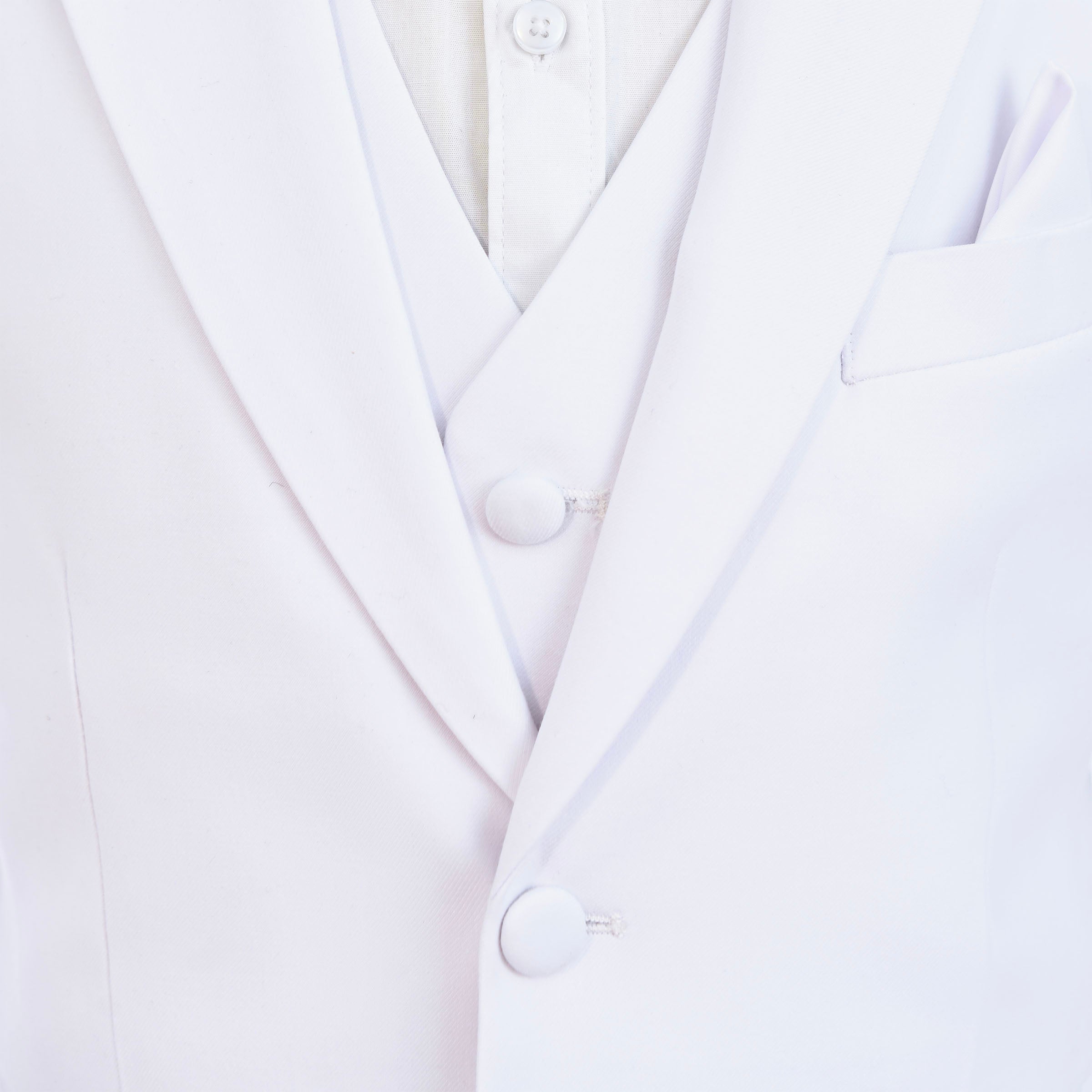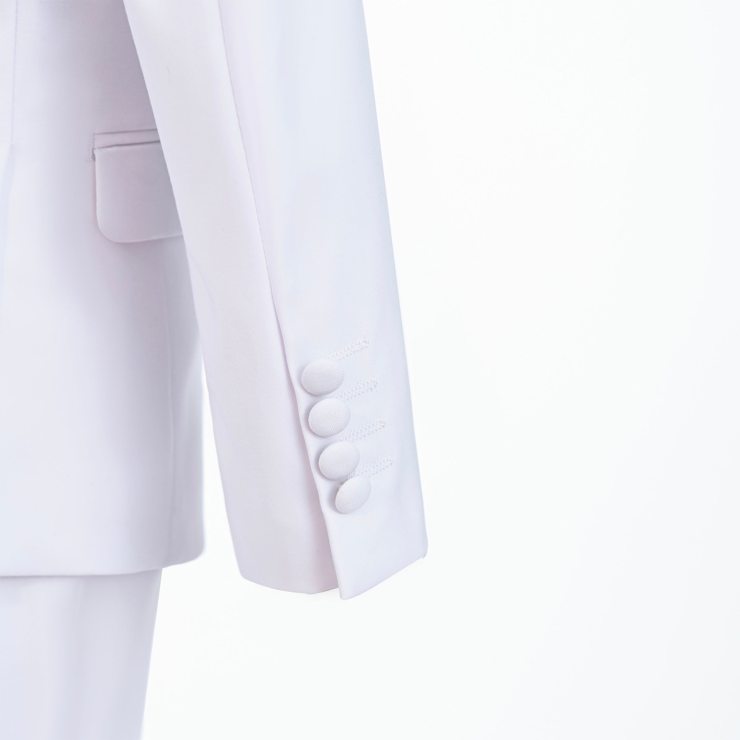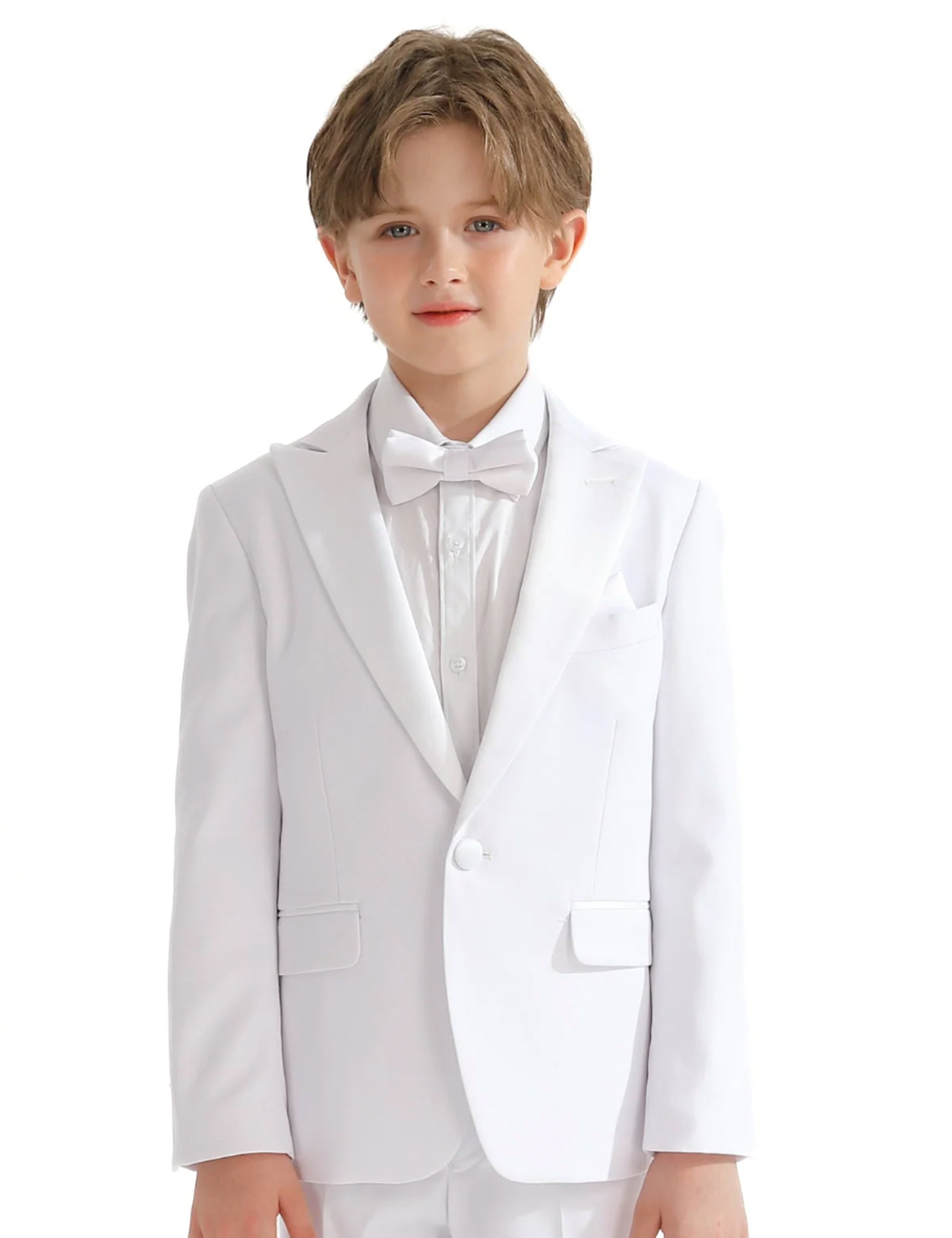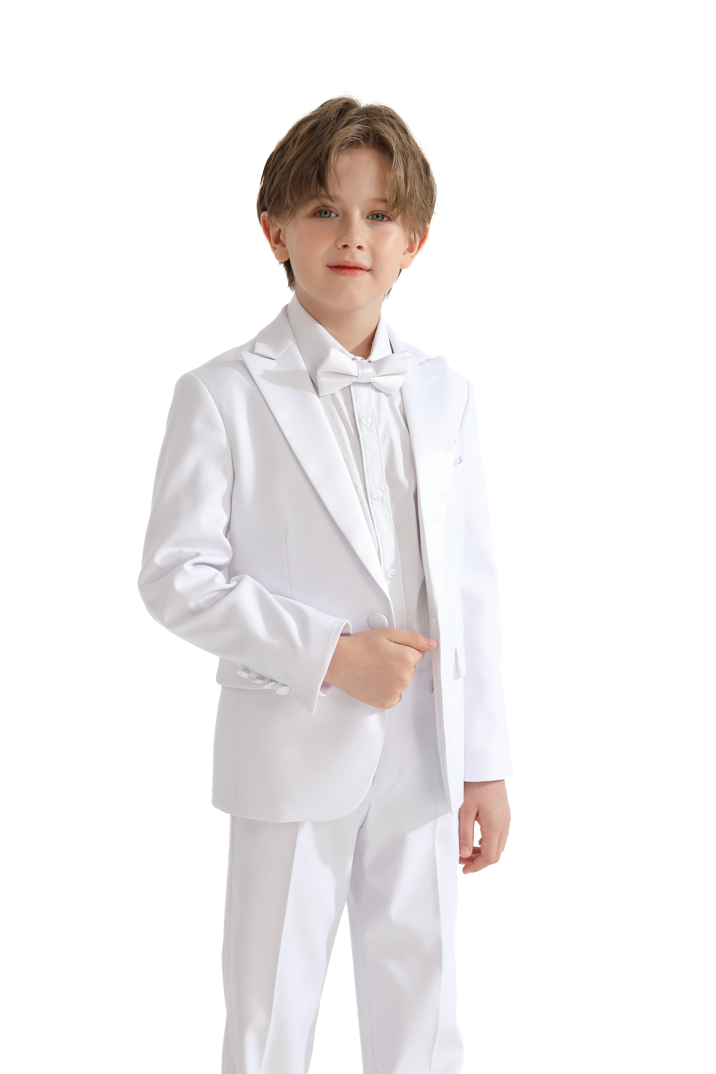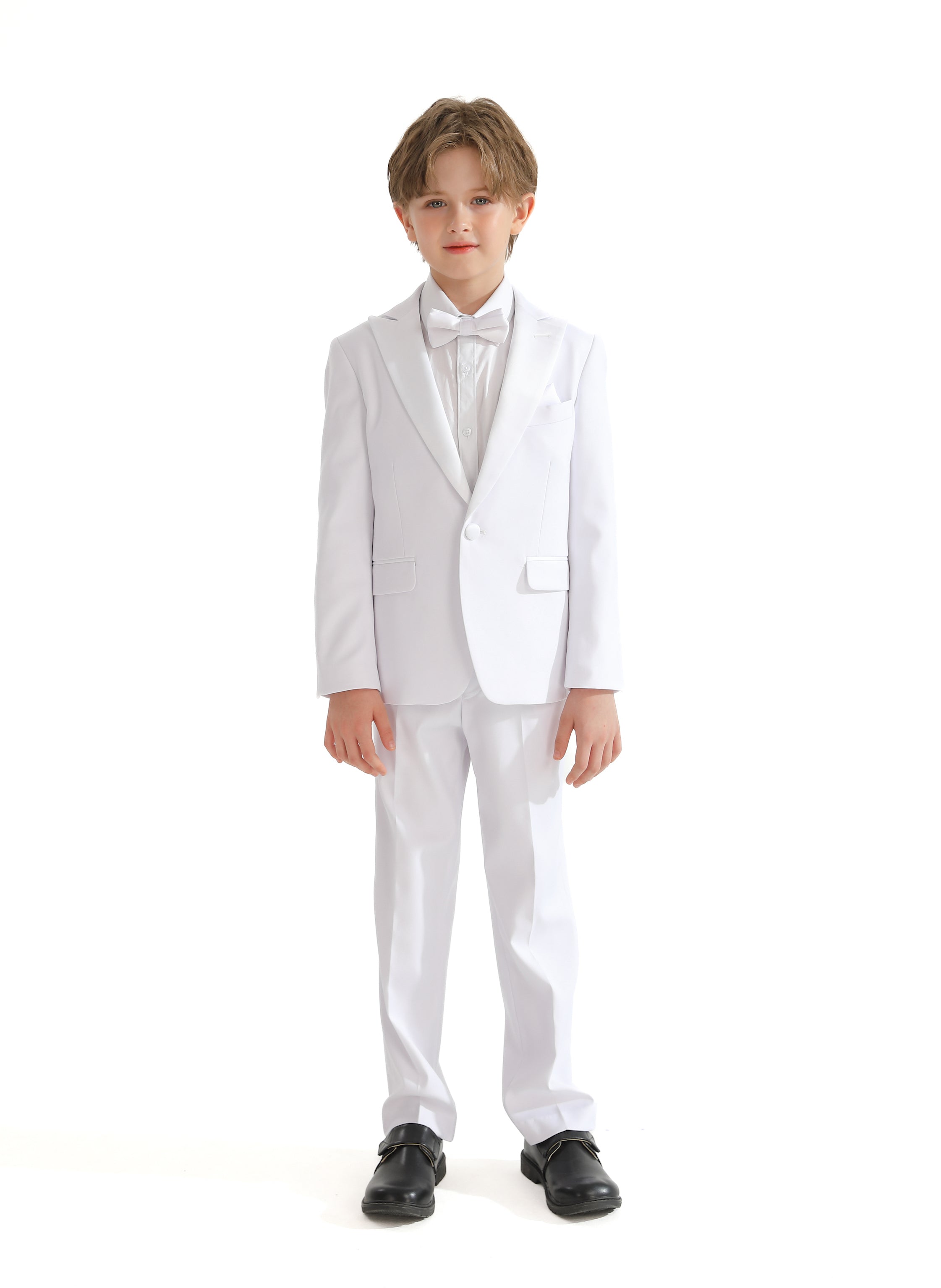 Complete your young gentleman's formal wardrobe with the White Peak Lapel Trim Wool Suit, impeccably crafted suit set that combines timeless style with modern tailoring.
